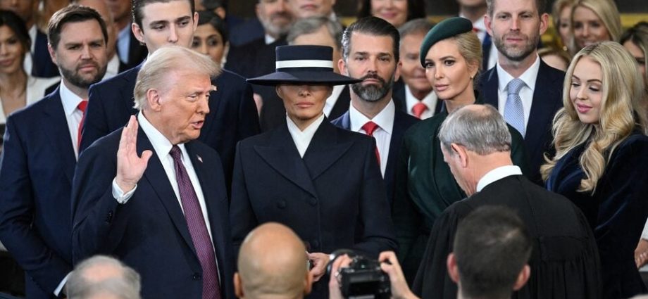 Donald Trump promised a new “golden age” for the United States as he took the oath of office for a historic second term on Monday, but he spent the most of his somber inaugural speech pushing strong measures to reverse what he called “American decline.”
